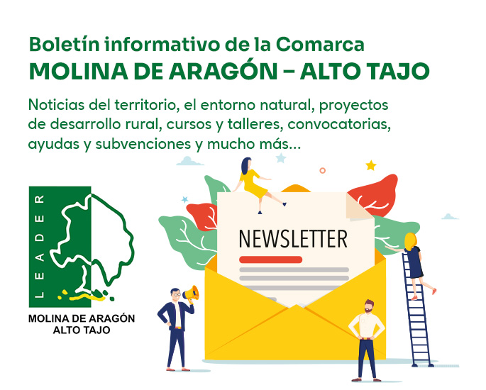 Si quieres recibir directamente en tu correo electrónico nuestras noticias, convocatorias, ayudas y actividades, suscríbete a nuestro boletín informativo y forma parte activa de la comarca Molina de Aragón – Alto Tajo.